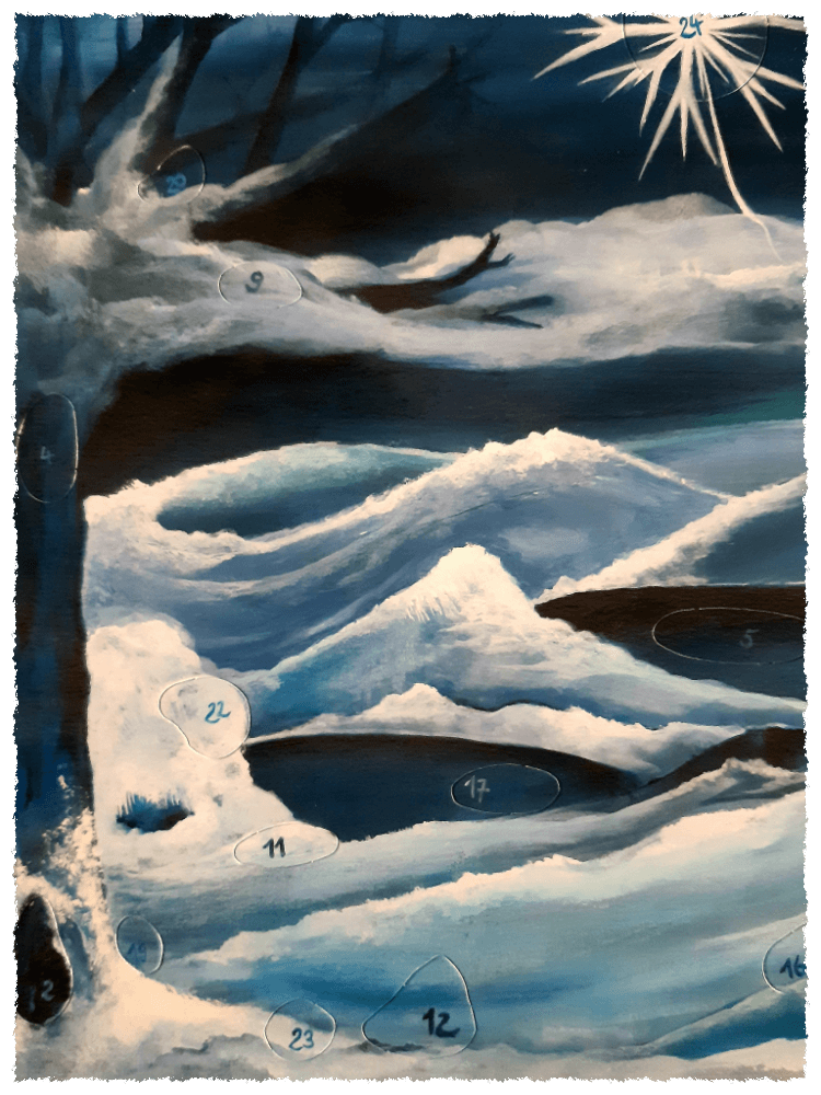 Dieser Überfluss, auch im Bereich von Adventskalendern, war Ansporn für mich, meinen ersten eigenen Kalender zu erschaffen, der Menschen in die Stille und damit zum Wesentlichen von Weihnachten und Advent hinführen kann.