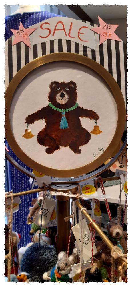 Auch für kleine Auftragsarbeiten bin ich sehr zu haben – hier die Illustration „YOGA-BÄR“ für einen Aufsteller im Bekleidungsgeschäft EVA SON Leipzig. Aufträge dieser Art erreichen mich über Mundpropaganda. In diesem Fall galt es, in der Vorweihnachtszeit viele kleine Filztierchen zu präsentieren und ich wurde für die Darstellung eines Bären im Yogasitz angefragt.