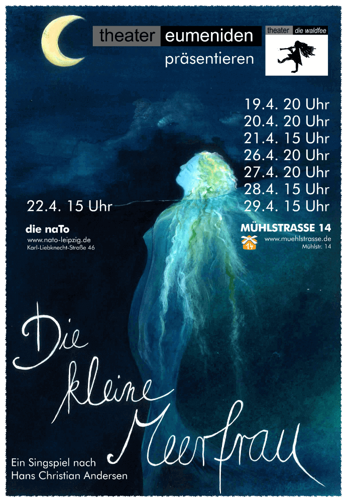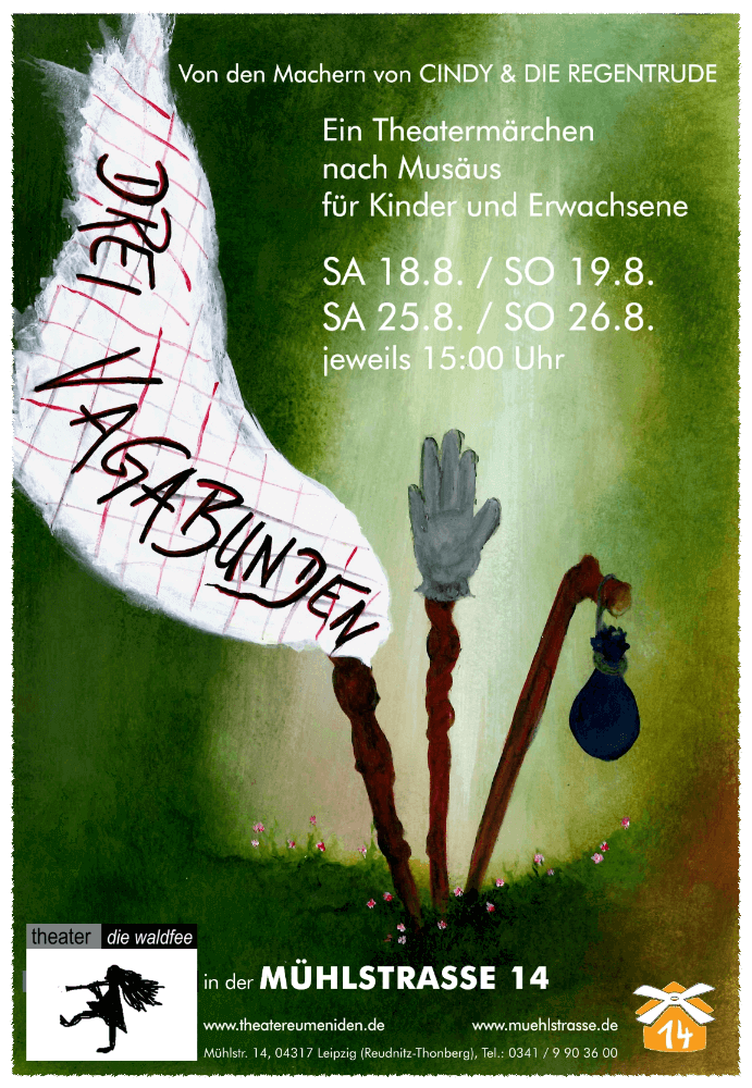 2018 bis 2021 entstanden viele handgemalte Plakatmotive für die Inszenierungen des Theaters Eumeniden. Ich bin kein großer Fan von Designprogrammen am PC und war deshalb ziemlich froh darüber, dass Janna Kagerer (damaliger Kopf und Regisseurin des Theaters Eumeniden) meine Arbeitsweise weit weg vom Digitalen sehr schätzen konnte. Das Theater Eumeniden ist ein kleines Off-Theater in einer Art Nachbarschafts- und Begegnungszentrum: dem Haus Mühlstraße. Ich hatte in den 3 Jahren die Plakate für alle Inszenierungen gemalt, war aber am glücklichsten, wenn wieder ein neues Märchen auf dem Programm stand.
